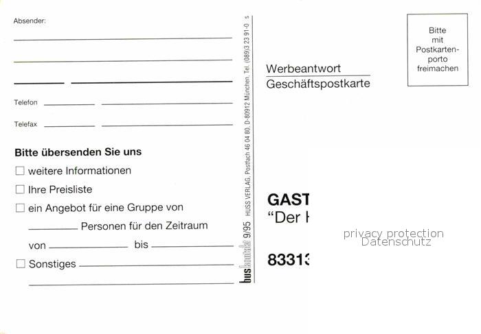 72827053 Hammer Siegsdorf Gasthof Hoerterer Der Hammerwirt postalisch nicht gelaufen Erhaltung siehe scans [FriedD77] KatCode: 11110009189145