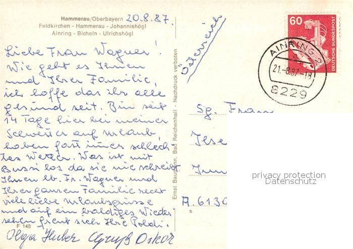 72954643 alte Postkarte Hammerau Feldkirchen Johannishoegl Ainring Bicheln Ulrichshoegl postalisch gelaufen Erhaltung siehe scans [WerneD78] KatCode: 11110009172111