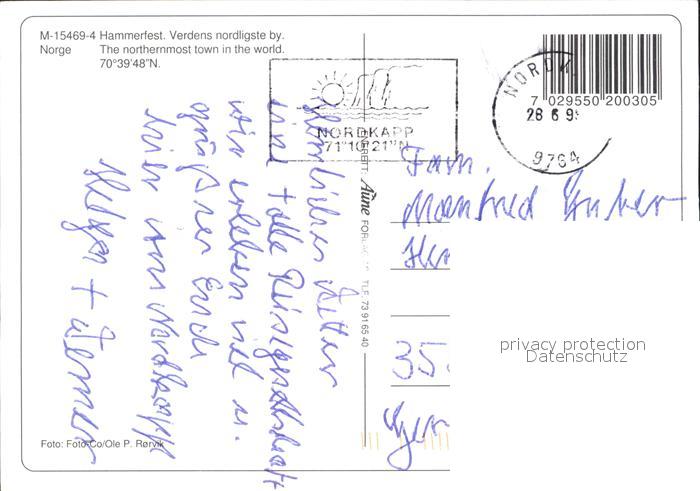 old postcard Hammerfest Hafen postalisch gelaufen Erhaltung siehe scans