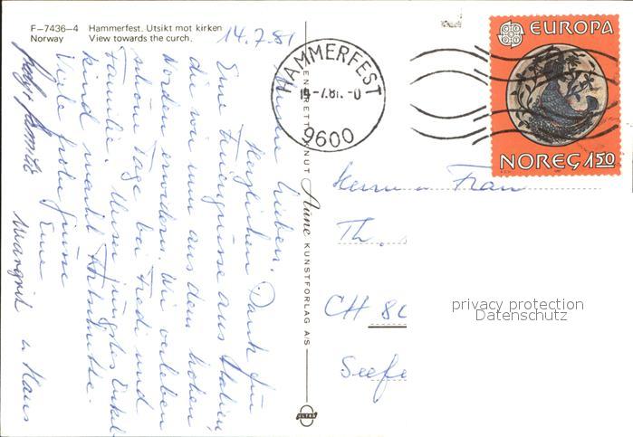 old postcard Hammerfest View towards the church Panorama postalisch gelaufen