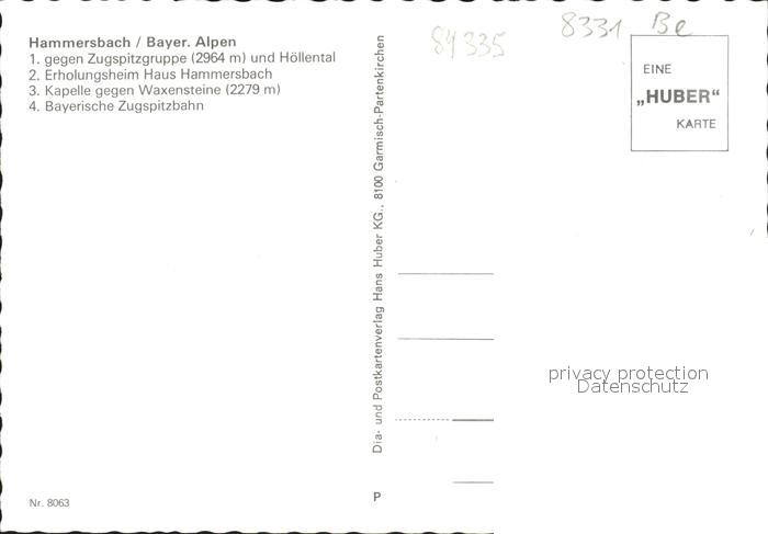 72142610 Hammersbach Grainau Erholungsheim Haus Hammersbach Kapelel Waxensteine Zugspitzbahn postalisch nicht gelaufen Erhaltung siehe scans KatCode: 11110009180118