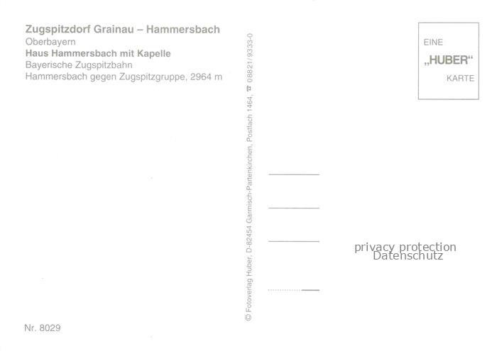 74038812 Hammersbach Grainau Garmisch Bayern Haus Hammersbach mit Kapelle Bayerische Zugspitzbahn Blick gegen Zugspitze Wettersteingebirge Huber Karte Nr. 8029 postalisch nicht gelaufen Erhaltung siehe scans [FriedD77] KatCode: 11110009180118