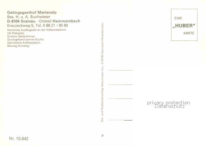 72905998 Hammersbach Grainau Gasthaus Marienalp postalisch nicht gelaufen Erhaltung siehe scans [AndreD76] KatCode: 11110009180118
