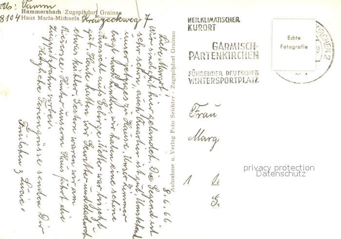 73650504 alte Postkarte Hammersbach Grainau Haus Maria Michaela postalisch gelaufen Erhaltung siehe scans [WerneD78] KatCode: 11110009180118