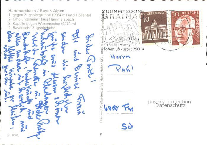 72572723 alte Postkarte Hammersbach Grainau Zugspitzgruppe Erholungsheim Waxsteine Zugspitzbahn postalisch gelaufen Erhaltung siehe scans [AndreD76] KatCode: 11110009180118