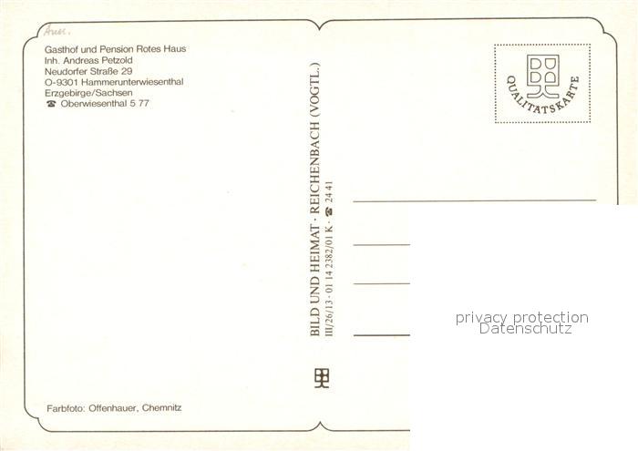 73741213 Hammerunterwiesenthal Gasthof Pension Rotes Haus postalisch nicht gelaufen Erhaltung siehe scans [WerneD78] KatCode: 11110014171240
