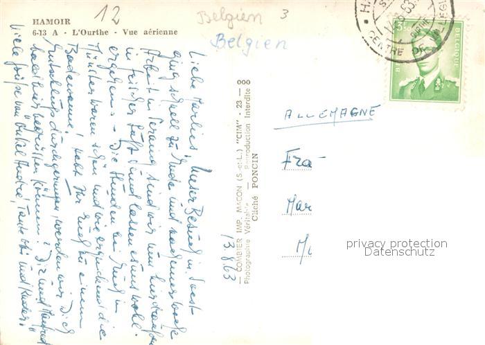 73740593 carte postale Hamoir Belgium Ourthe Vue aerienne postalisch gelaufen Erhaltung siehe scans [WerneD78] KatCode: 11070061007917