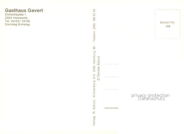 73730596 Hamwarde Gasthaus Gevert postalisch nicht gelaufen Erhaltung siehe scans [LiesaD40] KatCode: 11110001053050