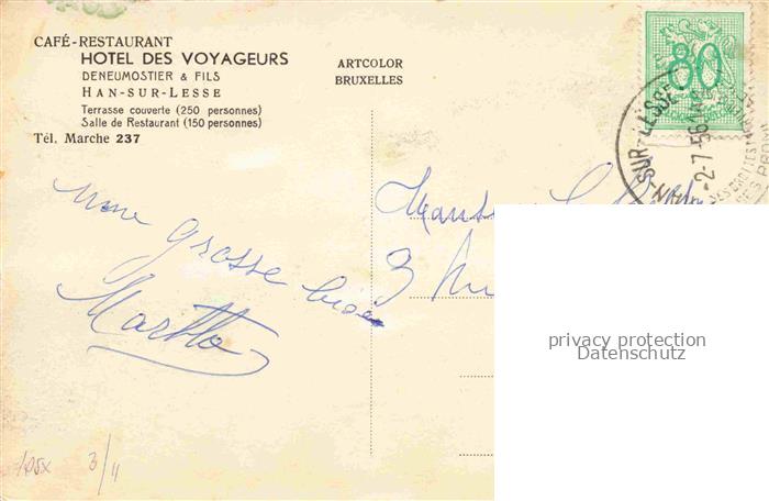 74046580 carte postale Han-sur-Lesse Belgie Cafe Restaurant Hotel des Voyageurs Teilansichten postalisch gelaufen Erhaltung siehe scans [WerneD78] KatCode: 11070091010401