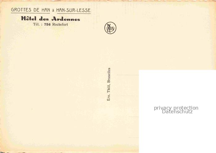 74034587 Han-sur-Lesse Belgie Grottes de Han Hotel des Ardennes postalisch nicht gelaufen Erhaltung siehe scans [WerneD78] KatCode: 11070091010401