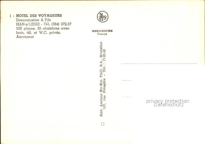 72271687 Han-sur-Lesse Hotel des Voyageurs postalisch nicht gelaufen Erhaltung siehe scans KatCode: 11070091010401