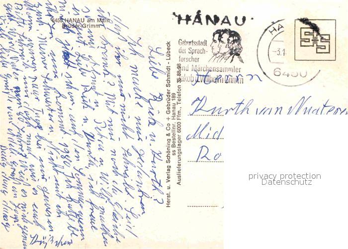 72664026 alte Postkarte Hanau Main Brueder Grimm Denkmal postalisch gelaufen Erhaltung siehe scans [FriedD77] KatCode: 11110006435014
