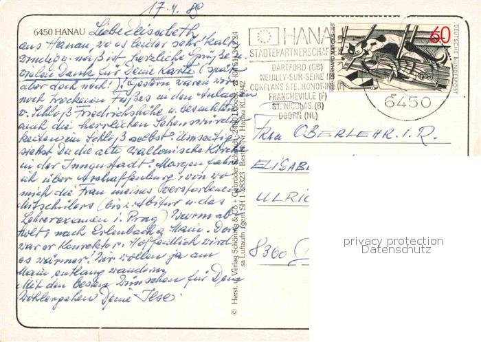 72668414 alte Postkarte Hanau Main Fliegeraufnahme postalisch gelaufen Erhaltung siehe scans [AndreD76] KatCode: 11110006435014