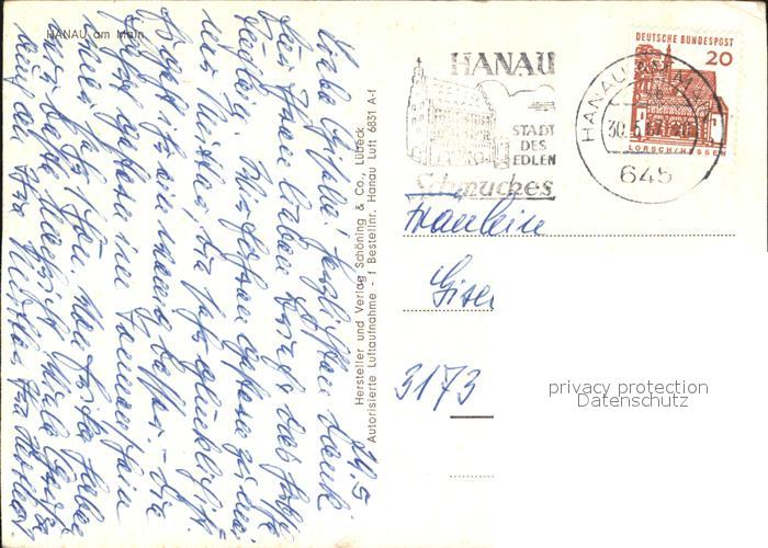 72610620 alte Postkarte Hanau Main Fliegeraufnahme Schloss postalisch gelaufen Erhaltung siehe scans [AndreD76] KatCode: 11110006435014