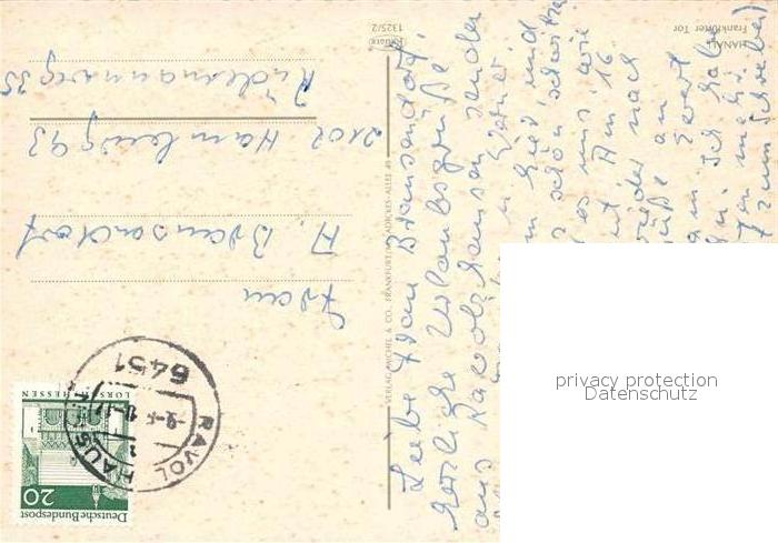 72867296 alte Postkarte Hanau Main Frankfurter Tor postalisch gelaufen Erhaltung siehe scans [NatalD47] KatCode: 11110006435014