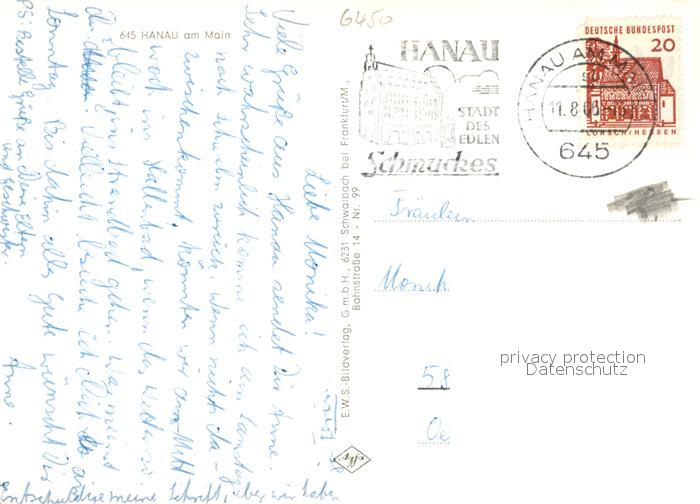 73070019 alte Postkarte Hanau Main Gebrueder Grimm Denkmal postalisch gelaufen Erhaltung siehe scans [WerneD78] KatCode: 11110006435014