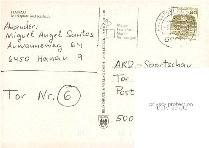 73615511 alte Postkarte Hanau Main Marktplatz und Rathaus postalisch gelaufen Erhaltung siehe scans [WerneD78] KatCode: 11110006435014