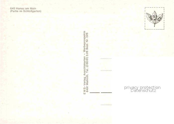 72762058 Hanau Main Partie im Schlossgarten postalisch nicht gelaufen Erhaltung siehe scans [WerneD78] KatCode: 11110006435014