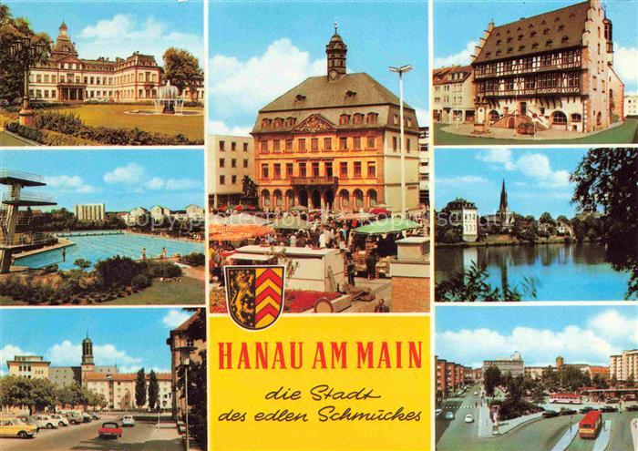 74104240 HANAU Main Schloss Schwimmbad Markt Rathaus Mainpartie Ortspartie postalisch nicht gelaufen Erhaltung siehe scans [WerneD78] KatCode: 11110006435014