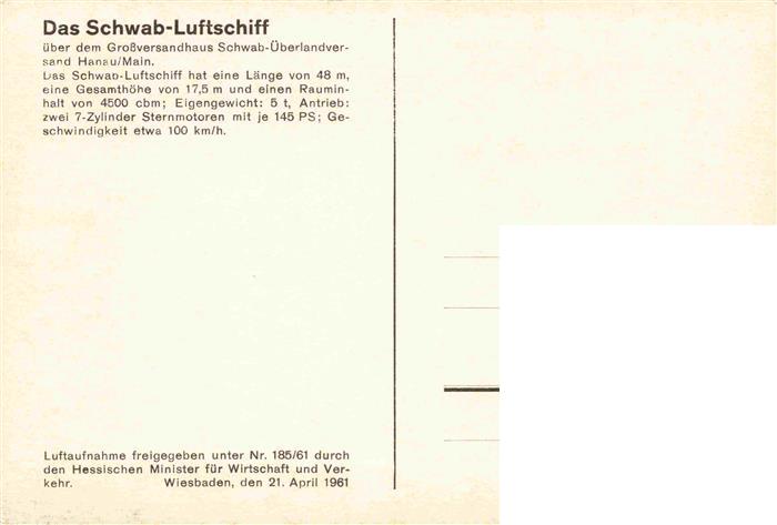 73975000 Hanau Main Schwab Luftschiff ueber dem Grossversandhaus Schwab postalisch nicht gelaufen Erhaltung siehe scans [WerneD78] KatCode: 11110006435014