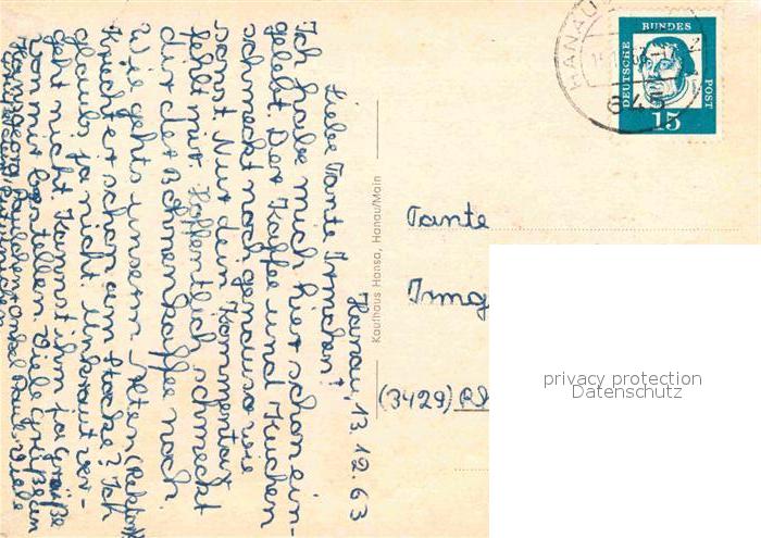 72787004 alte Postkarte Hanau Main Stadt des edlen Schmuckes schmiedeeisernes Tor Denkmal Gebaeude Platz Bruecke postalisch gelaufen Erhaltung siehe scans [FriedD77] KatCode: 11110006435014