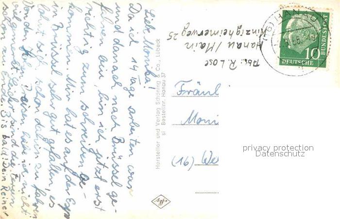 72748063 alte Postkarte Hanau Main Teilansichten Gebaeude Denkmal Statue postalisch gelaufen Erhaltung siehe scans [FriedD77] KatCode: 11110006435014