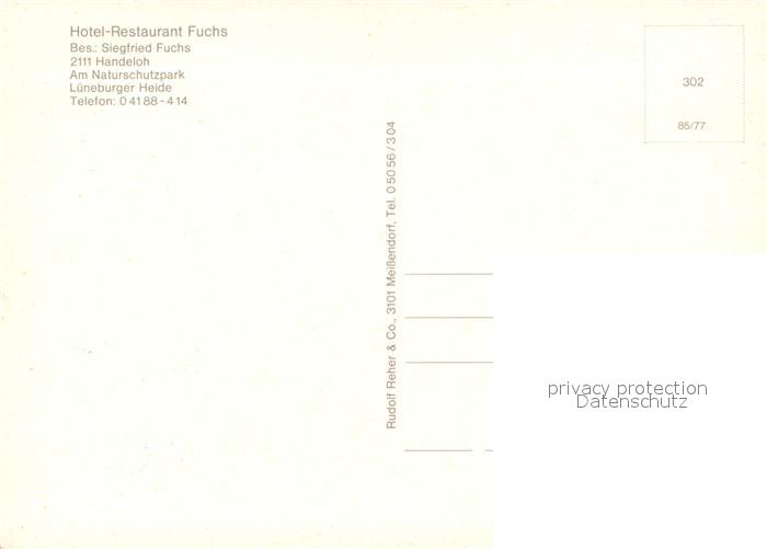 73324274 Handeloh Hotel Restaurant Fuchs Naturschutzpark Lueneburger Heide postalisch nicht gelaufen Erhaltung siehe scans [FriedD77] KatCode: 11110003353015