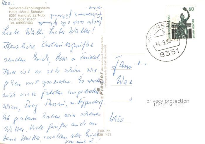 73654276 alte Postkarte Handlab Senioren Erholungsheim Maria Schutz Aufenthaltsraum Liegehalle Rueckansicht postalisch gelaufen Erhaltung siehe scans [WerneD78] KatCode: 11110009271127