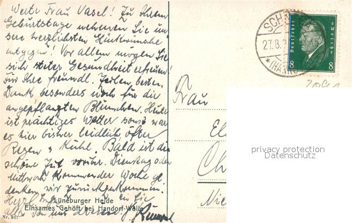 43367923 alte Postkarte Handorf Lueneburg Einsames Gehoeft Lueneburger Heide postalisch gelaufen Erhaltung siehe scans [WerneD78] KatCode: 11110003355017