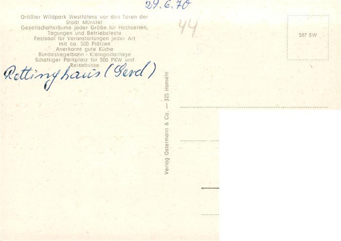 73894991 Handorf Muenster Westfalen Wildpark Restaurant Haus Proebsting postalisch nicht gelaufen Erhaltung siehe scans [WerneD78] Wern Katcode 11110005515000