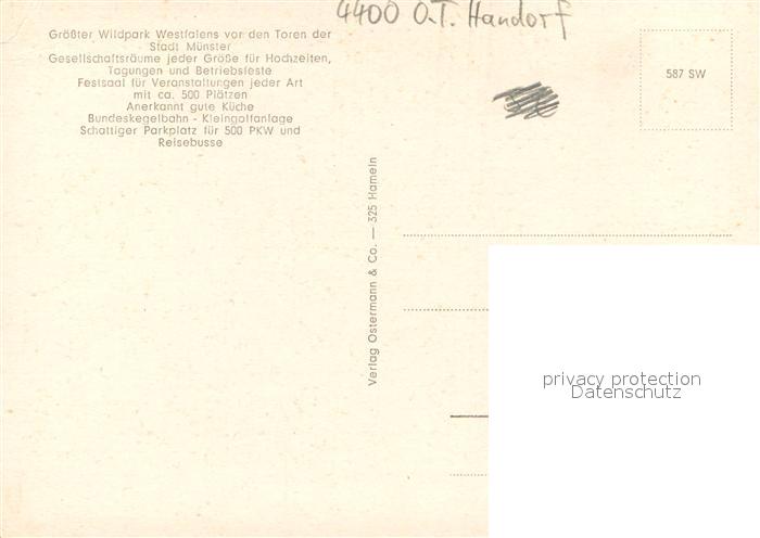 73700887 Handorf Muenster Wildpark Restaurant Haus Proebsting postalisch nicht gelaufen Erhaltung siehe scans [FriedD77] KatCode: 11110005515000
