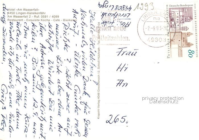 73104610 alte Postkarte Hanekenfaehr Ems Hotel am Wasserfall postalisch gelaufen Erhaltung siehe scans [WerneD78] KatCode: 11110003454032