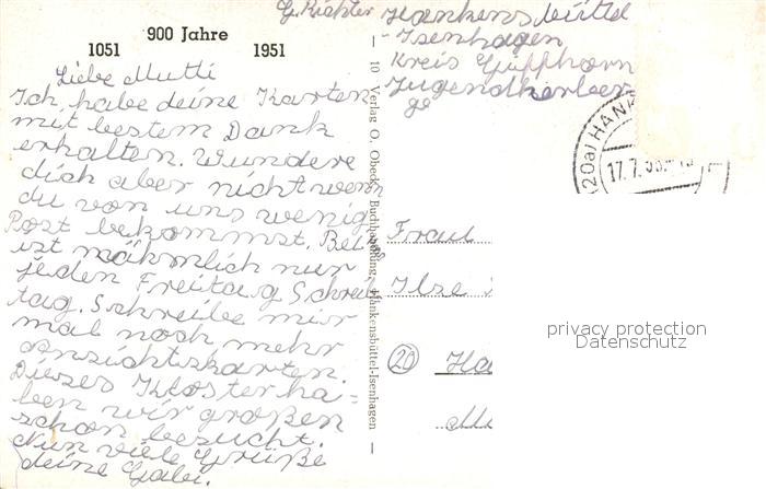 43490178 alte Postkarte Hankensbuettel Kloster Isenhagen Innenhof postalisch gelaufen Erhaltung siehe scans [KathaD81] KatCode: 11110003151011