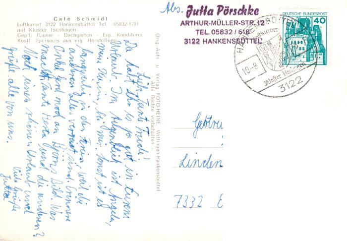 73884730 alte Postkarte Hankensbuettel Lueneburger Heide Cafe Schmidt Gastraeume postalisch gelaufen Erhaltung siehe scans [FriedD77] KatCode: 11110003151011