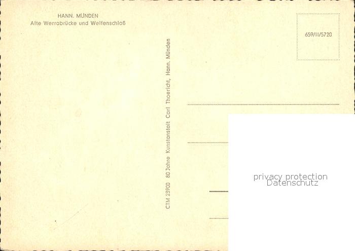 72507596 Hann. Muenden Alte Werrabruecke und Welfenschloss postalisch nicht gelaufen Erhaltung siehe scans KatCode: 11110003152016