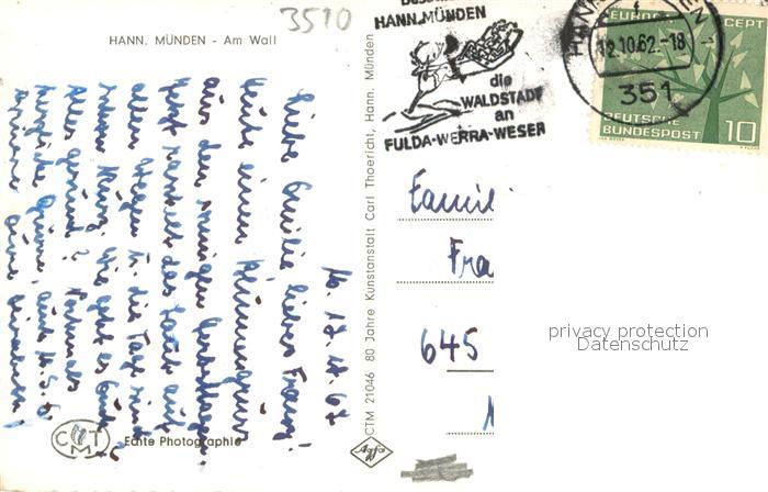 73692487 alte Postkarte Hann. Muenden Am Wall postalisch gelaufen Erhaltung siehe scans [WerneD78] KatCode: 11110003152016