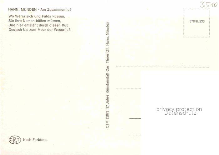 72901932 Hann. Muenden Am Zusammenfluss von Fulda und Werra postalisch nicht gelaufen Erhaltung siehe scans [WerneD78] KatCode: 11110003152016