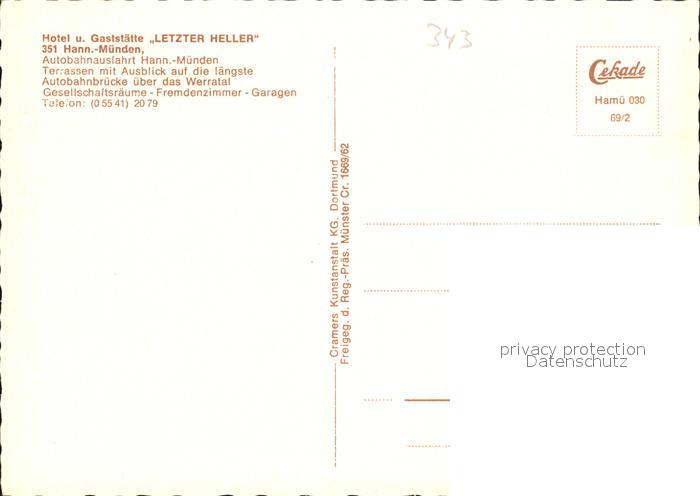 72603497 Hann. Muenden Autobahnbruecke Hotel Gaststaette Letzter Heller Fliegeraufnahme postalisch nicht gelaufen Erhaltung siehe scans [FriedD77] KatCode: 11110003152016