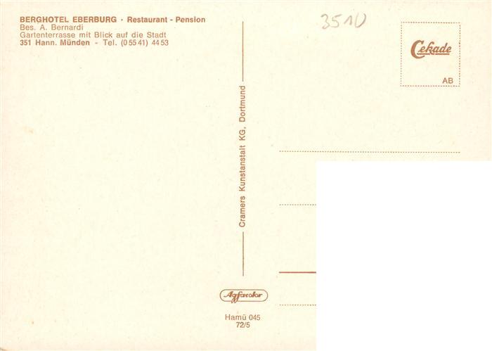 73935698 Hann. Muenden Berghotel Ebernburg Panorama postalisch nicht gelaufen Erhaltung siehe scans [FriedD77] KatCode: 11110003152016