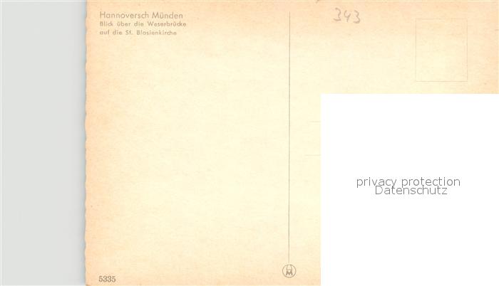 73335638 Hann. Muenden Blick ueber die Weserbruecke auf St Blasienkirche postalisch nicht gelaufen Erhaltung siehe scans [FriedD77] KatCode: 11110003152016