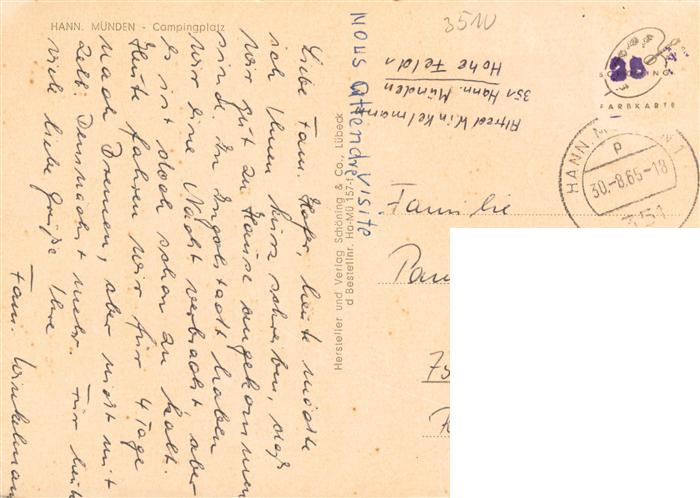73938764 alte Postkarte Hann. Muenden Campingplatz postalisch gelaufen Erhaltung siehe scans [FriedD77] KatCode: 11110003152016