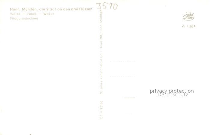 73692486 Hann. Muenden Dreifluessestadt mit Werra Fulda Weser postalisch nicht gelaufen Fliegeraufnahme Erhaltung siehe scans [WerneD78] KatCode: 11110003152016