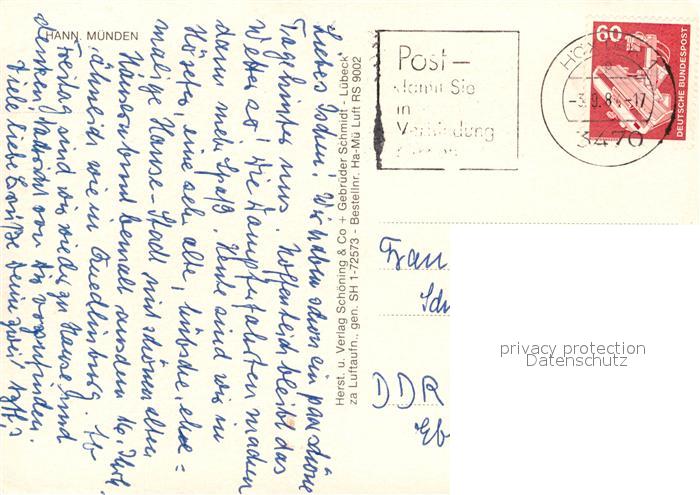 73228712 alte Postkarte Hann. Muenden Fliegeraufnahme postalisch gelaufen Erhaltung siehe scans [FriedD77] KatCode: 11110003152016