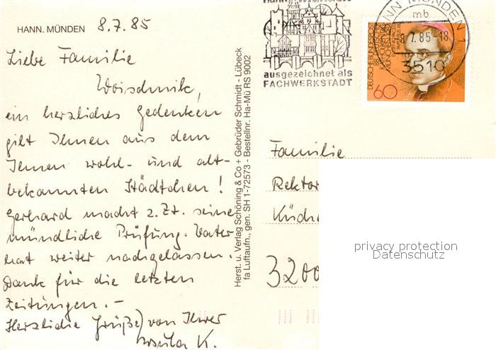 72960001 alte Postkarte Hann. Muenden Fliegeraufnahme postalisch gelaufen Erhaltung siehe scans [WerneD78] KatCode: 11110003152016