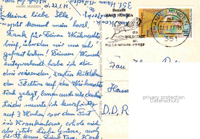 72781148 alte Postkarte Hann. Muenden Fliegeraufnahme postalisch gelaufen Erhaltung siehe scans [FriedD77] KatCode: 11110003152016