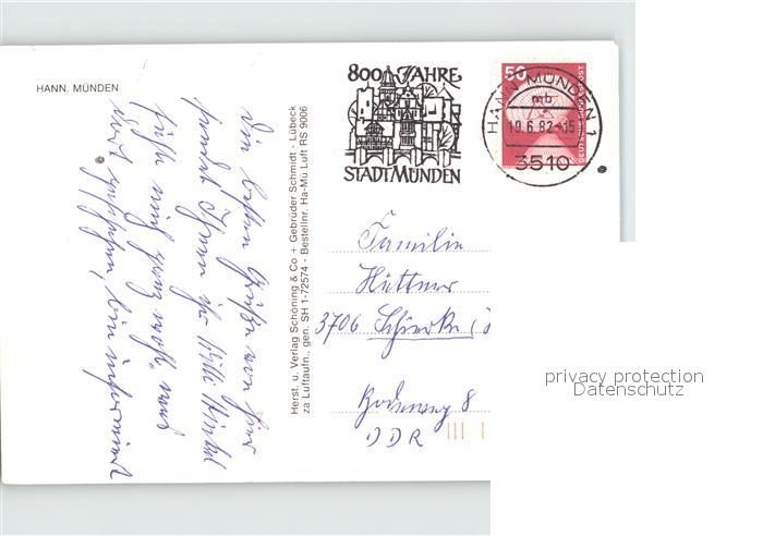 72481636 alte Postkarte Hann. Muenden Fliegeraufnahme postalisch gelaufen Erhaltung siehe scans KatCode: 11110003152016