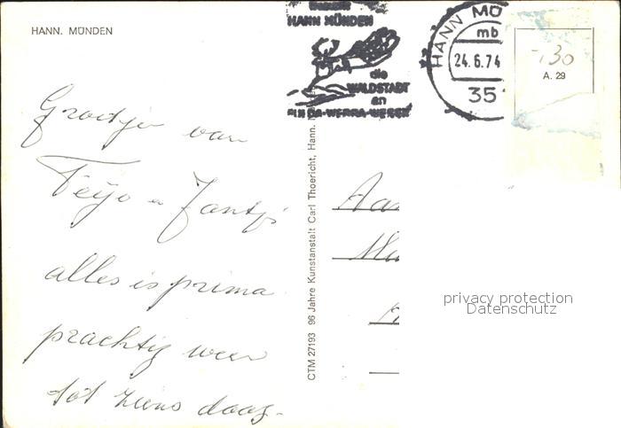 72273159 alte Postkarte Hann. Muenden Fliegeraufnahme postalisch gelaufen Erhaltung siehe scans KatCode: 11110003152016