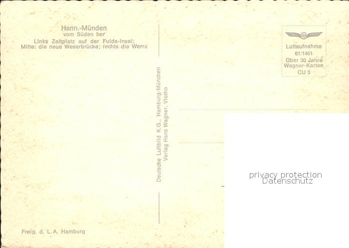 72263467 Hann. Muenden Fliegeraufnahme mit Camping Fulda-Insel Weserbruecke postalisch nicht gelaufen Erhaltung siehe scans KatCode: 11110003152016
