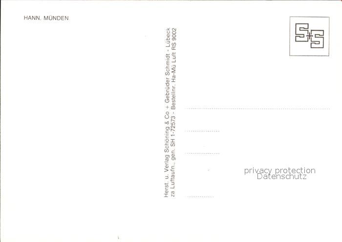 72573978 Hann. Muenden Fliegeraufnahme mit Fluss postalisch nicht gelaufen Erhaltung siehe scans [LiesaD40] KatCode: 11110003152016