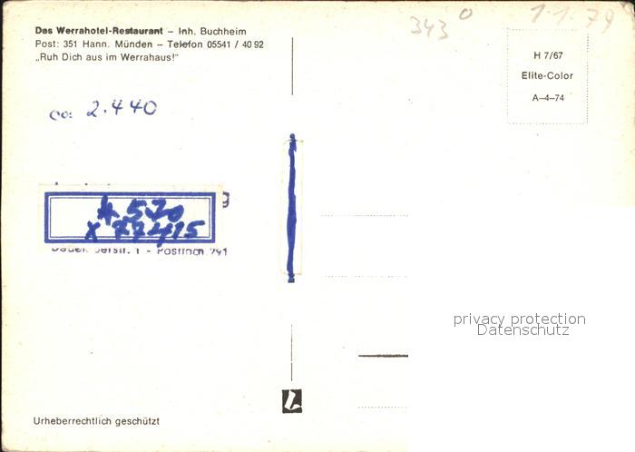 72608557 Hann. Muenden Fliegeraufnahme Werrahotel Restaurant postalisch nicht gelaufen Erhaltung siehe scans [LiesaD40] KatCode: 11110003152016